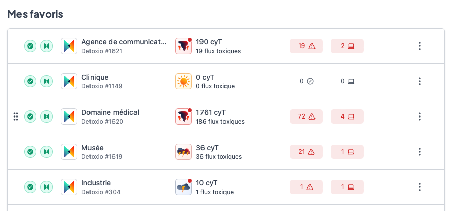 Les appareils favoris sont épinglés sur la page d'accueil et permettent d'accéder rapidement à leur dashboard.